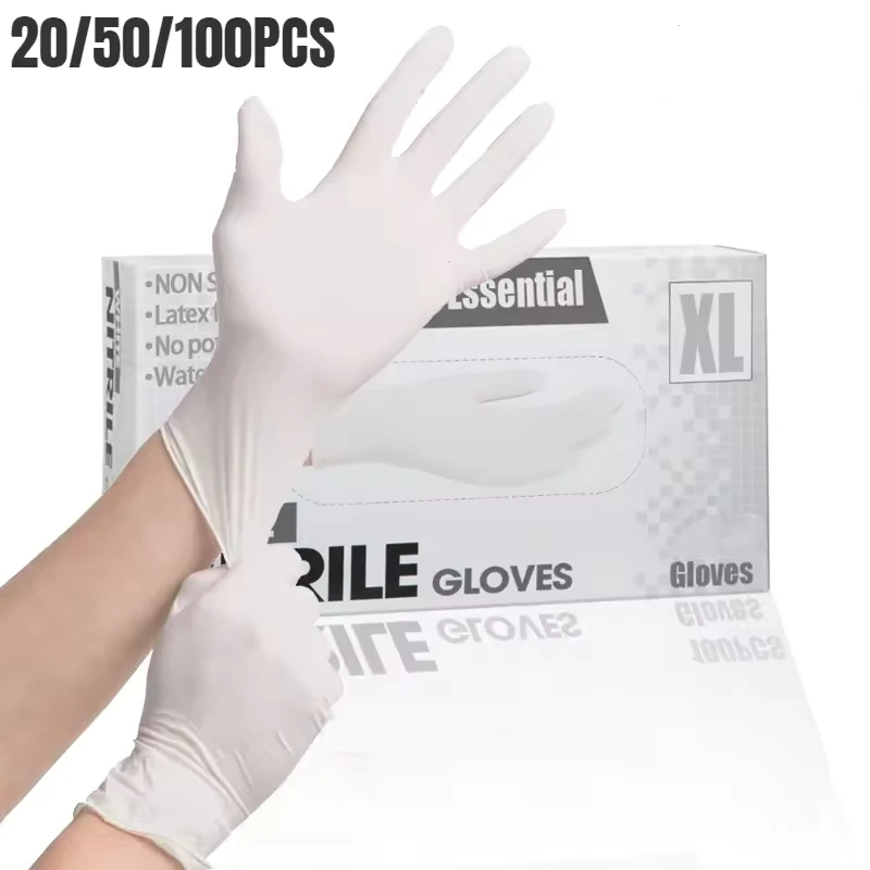 20/50/100PCS White Nitrile Gloves Disposable Household Cleaning Gloves for Kitchen Cooking Dishwashing Pet Care Tools Latex Free