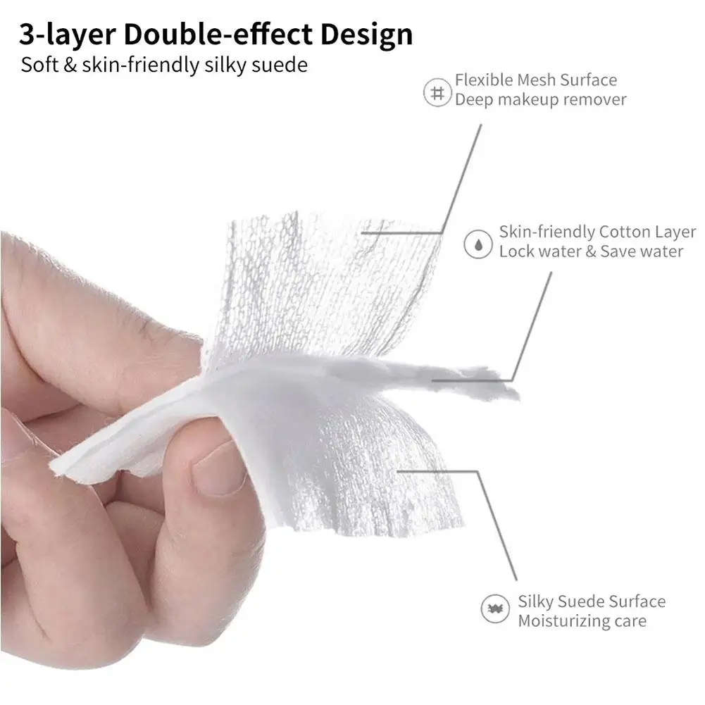 Pour an appropriate amount of makeup remover into the cotton mesh and gently wipe to remove facial makeup.